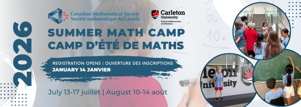 La Société mathématique du Canada est fière d’offrir deux semaines uniques de camp de mathématiques conçues pour éveiller la curiosité et nouer des amitiés durables. Au cours de la première semaine, les campeur(euse)s exploreront le monde des probabilités, de la littératie financière et des casse-têtes stratégiques.